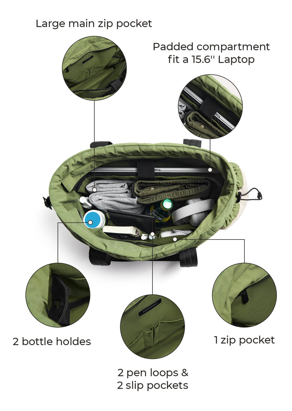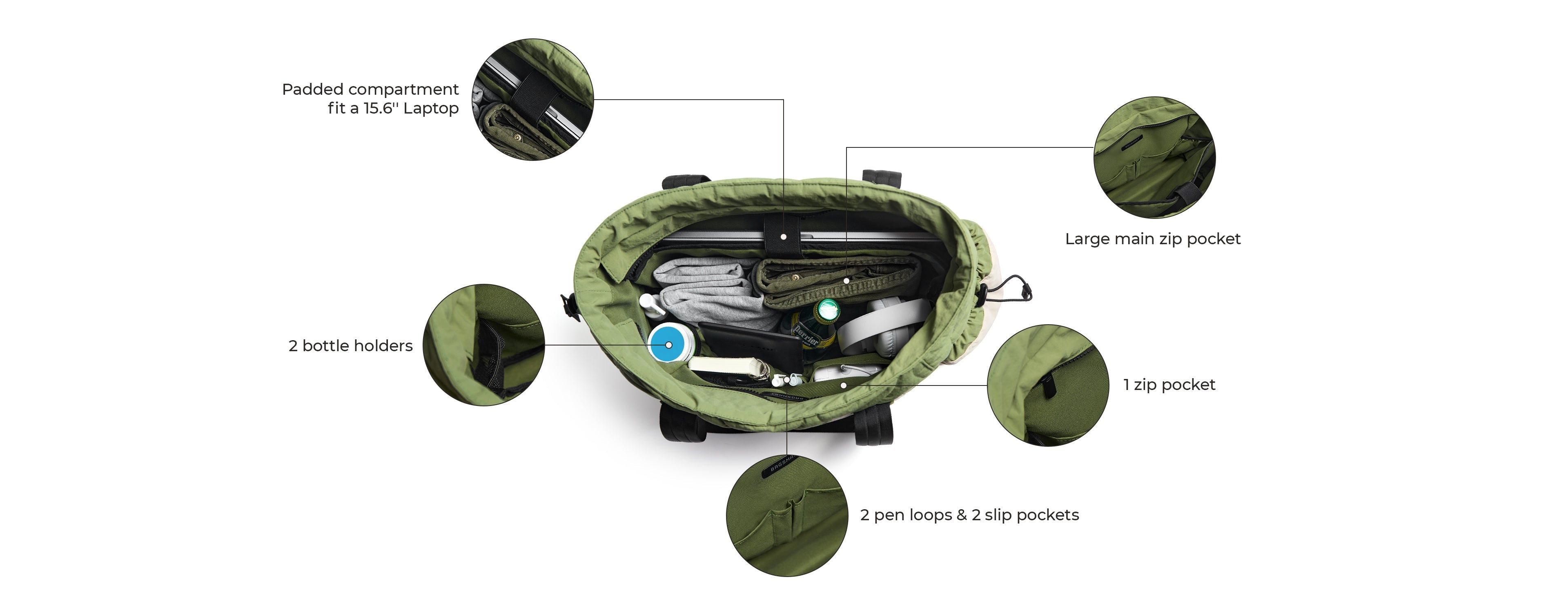 - Convertissez la poche extérieure en pochette pour chariot à bagages