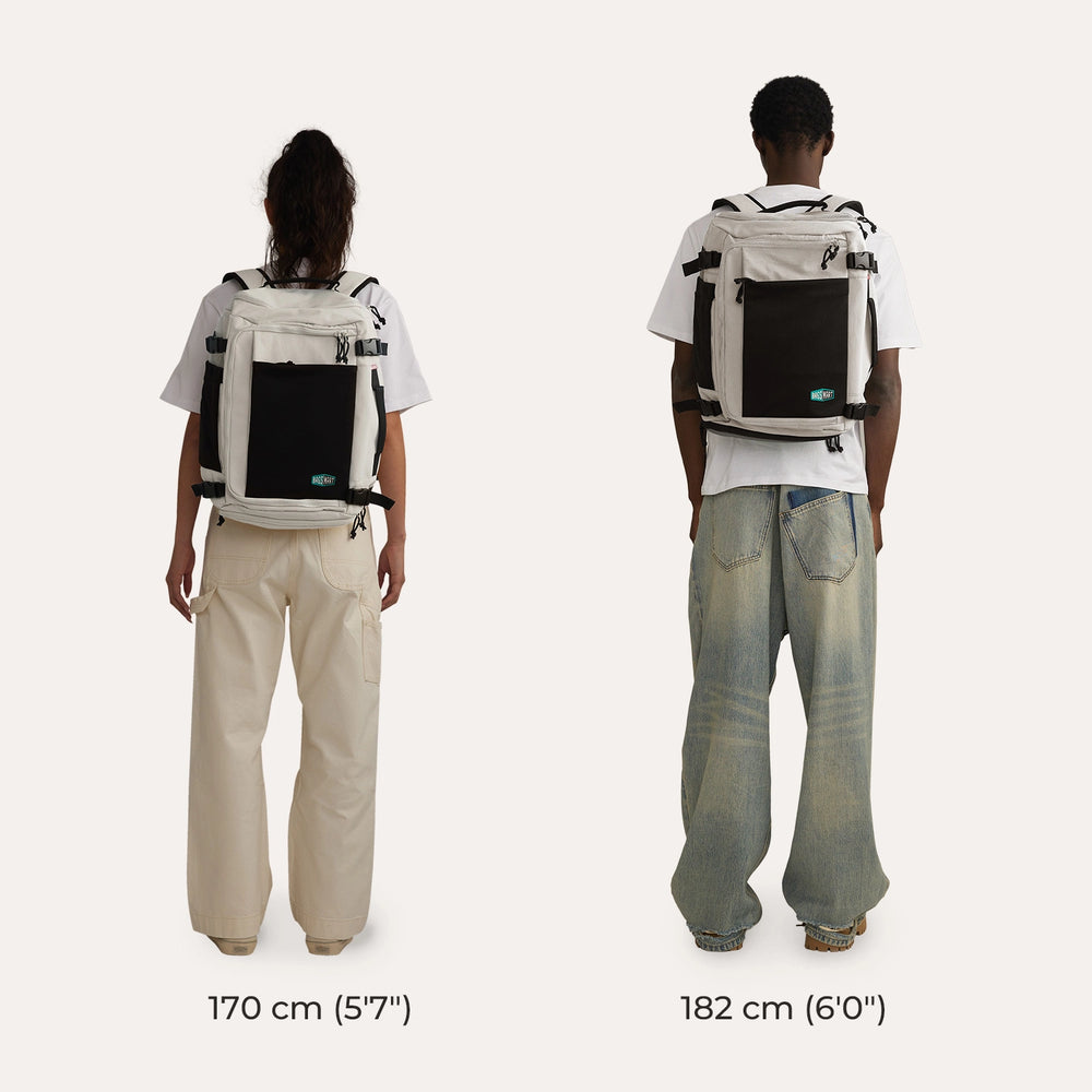 - After expansion: 38L, 31cm x 42cm x 25.5cm / 12.2" x 16.5" x 10"