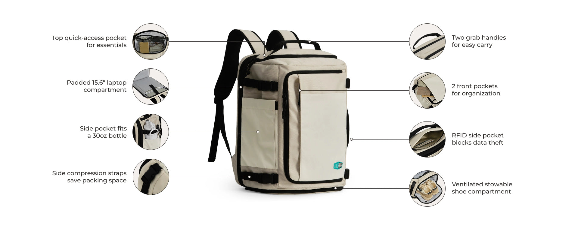 - Carry-on approved, expandable 28¨C38L for 3¨C5 day trips.