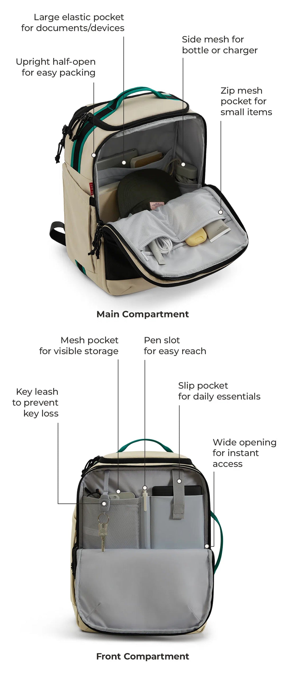 - Sac de 22 litres idéal pour les trajets domicile-travail, homologué par les compagnies aériennes pour les voyages d'une journée ou plus.