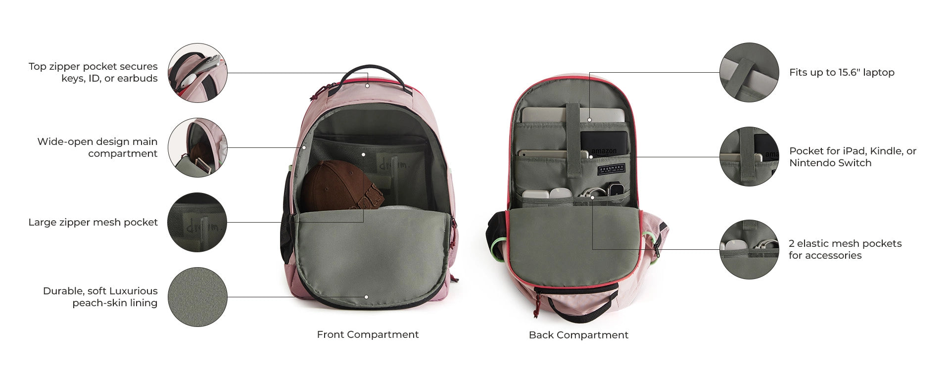 - Capacité de 26 litres pour les livres, la technologie et les articles de tous les jours