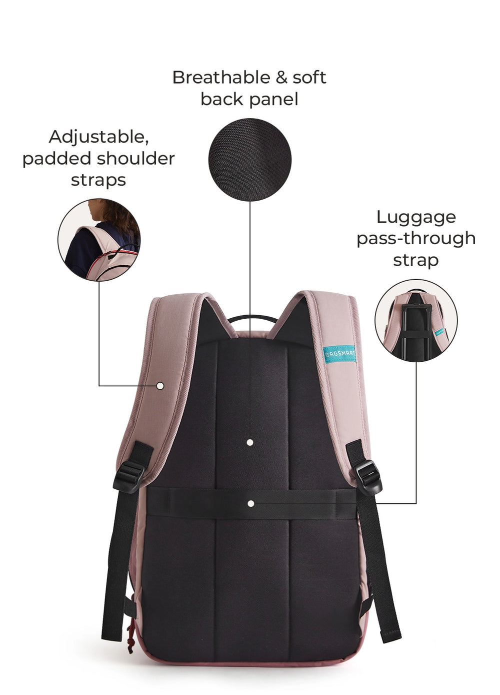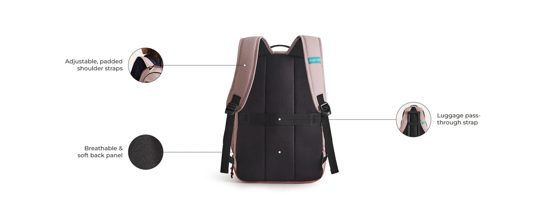 - Le panneau arrière respirant vous maintient au frais en déplacement.