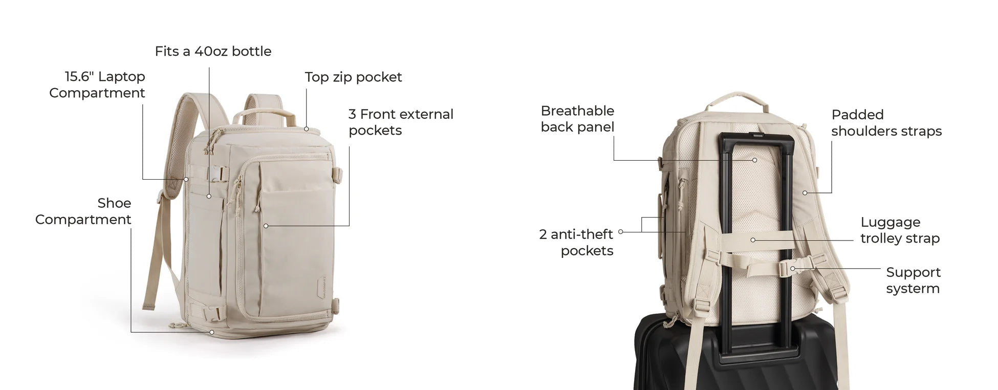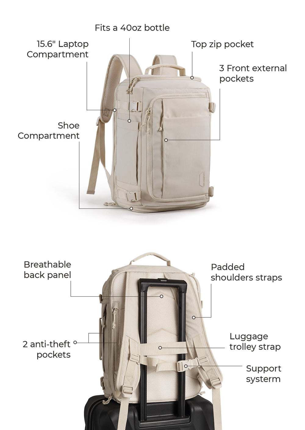 Bagsmart Offres Garantie limitée de 30 jours Couvrant uniquement les défauts du fabricant, tout dommage résultant de l'abus ou de l'usure normale n'est pas couvert par notre politique.