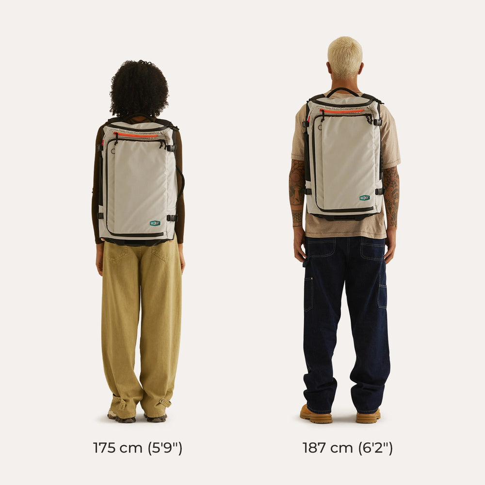 - 3 modes de transport : sac à dos, à roulettes ou à emporter.