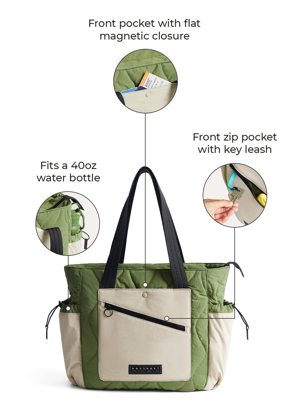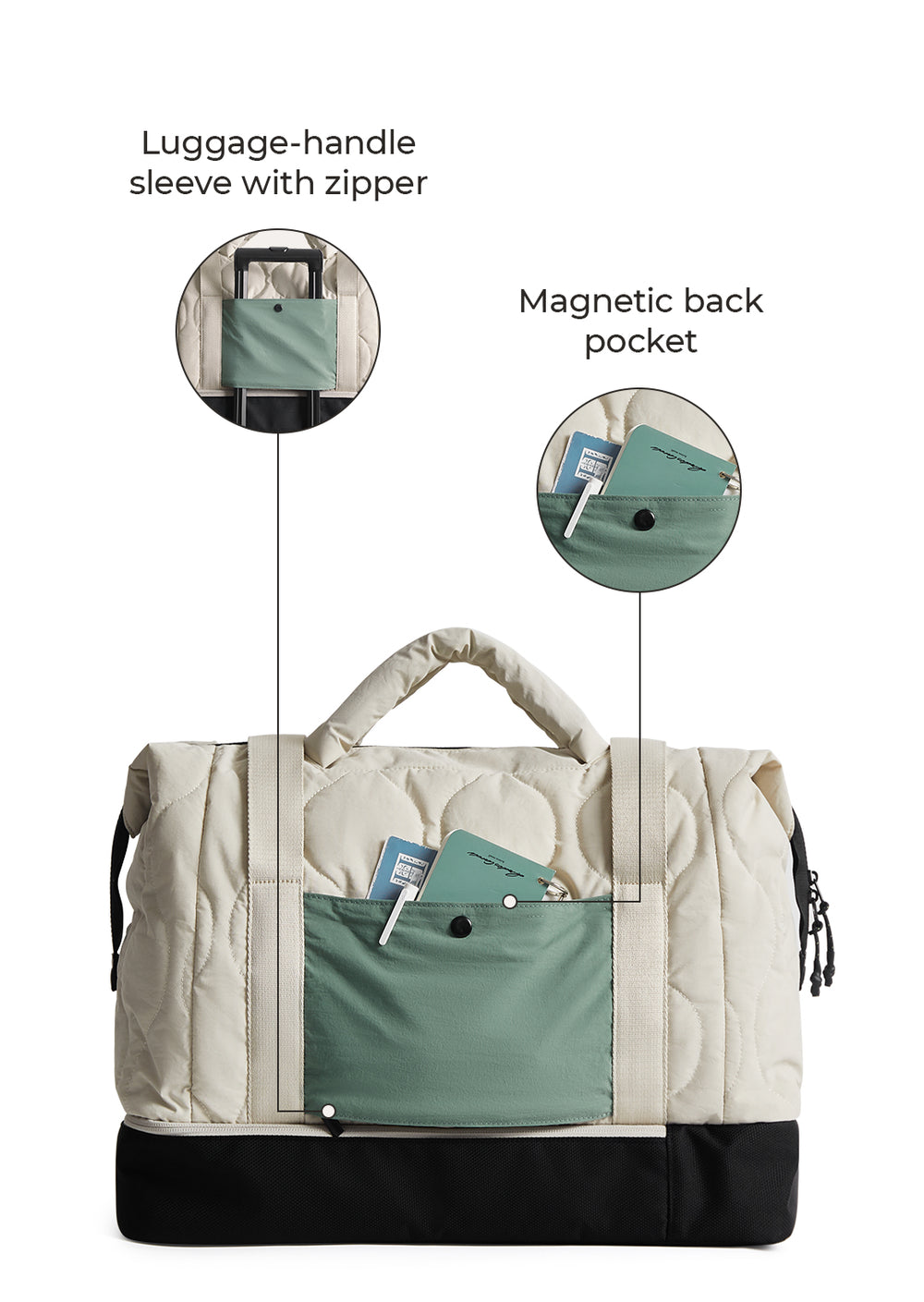 Élégant et spacieux, ce fourre-tout est parfait pour un usage quotidien ou comme bagage à main pour vos voyages. Avec plusieurs compartiments et une conception légère, il maintient tous vos éléments essentiels facilement accessibles en déplacement.