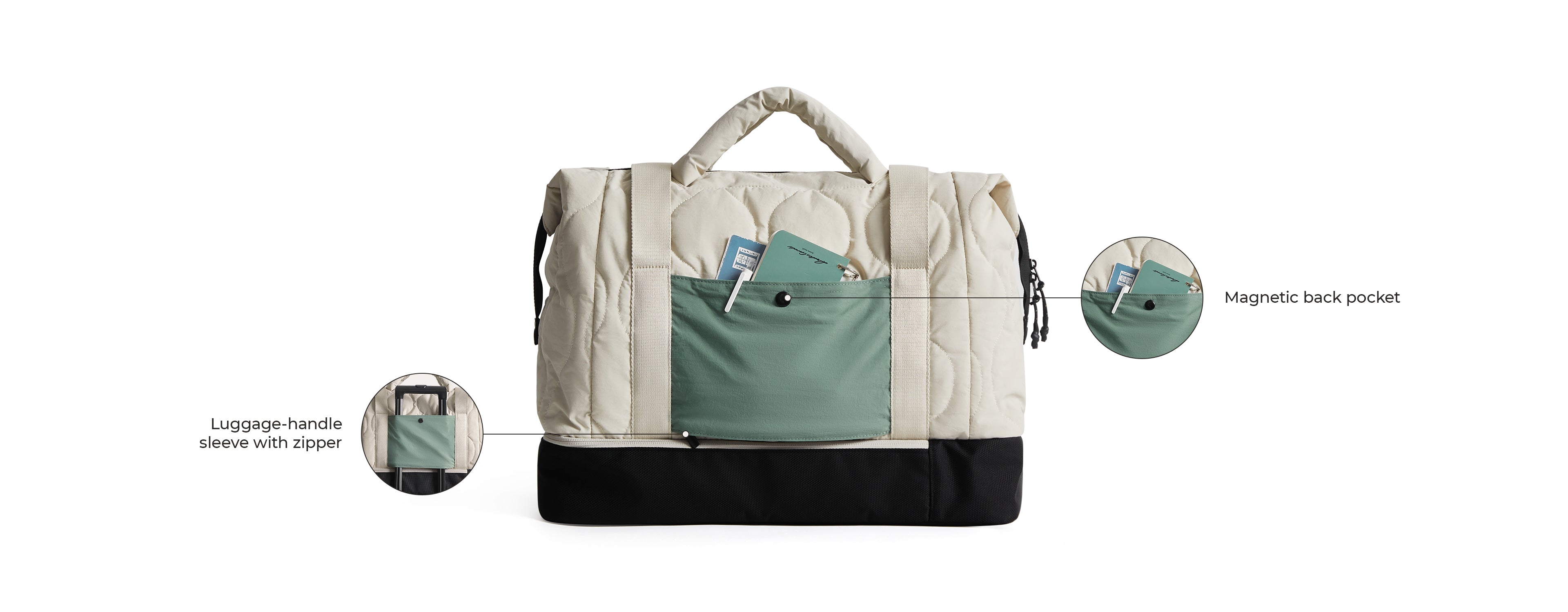 - Convertissez la poche extérieure en pochette pour chariot à bagages